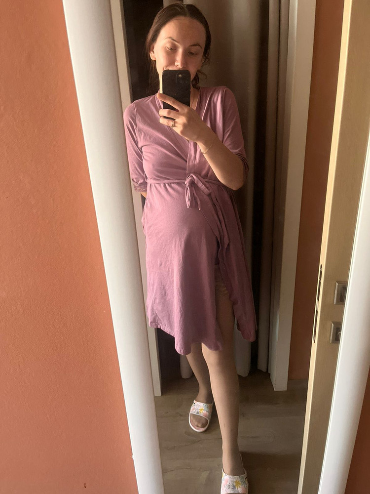 Ткань тонкая, просвечивается. Товар пришел в пакете от предыдущего покупателя-отказника. Все мятое. Как скомкали так и бросили. Пакет весь пыльный. Продаете для беременных, а все какое-то пыльное и грязное. Заводской упаковки не было.